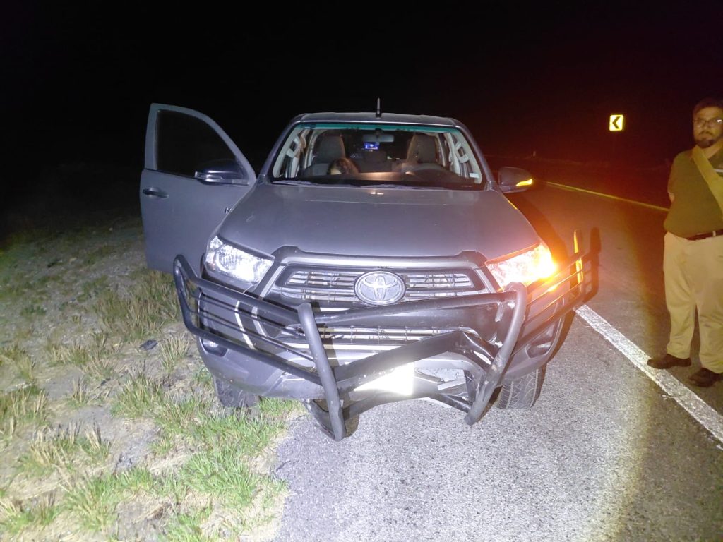Se trató de una camioneta Toyota, cuyo conductor no logró esquivar la unidad que permanecía sobre el asfalto.