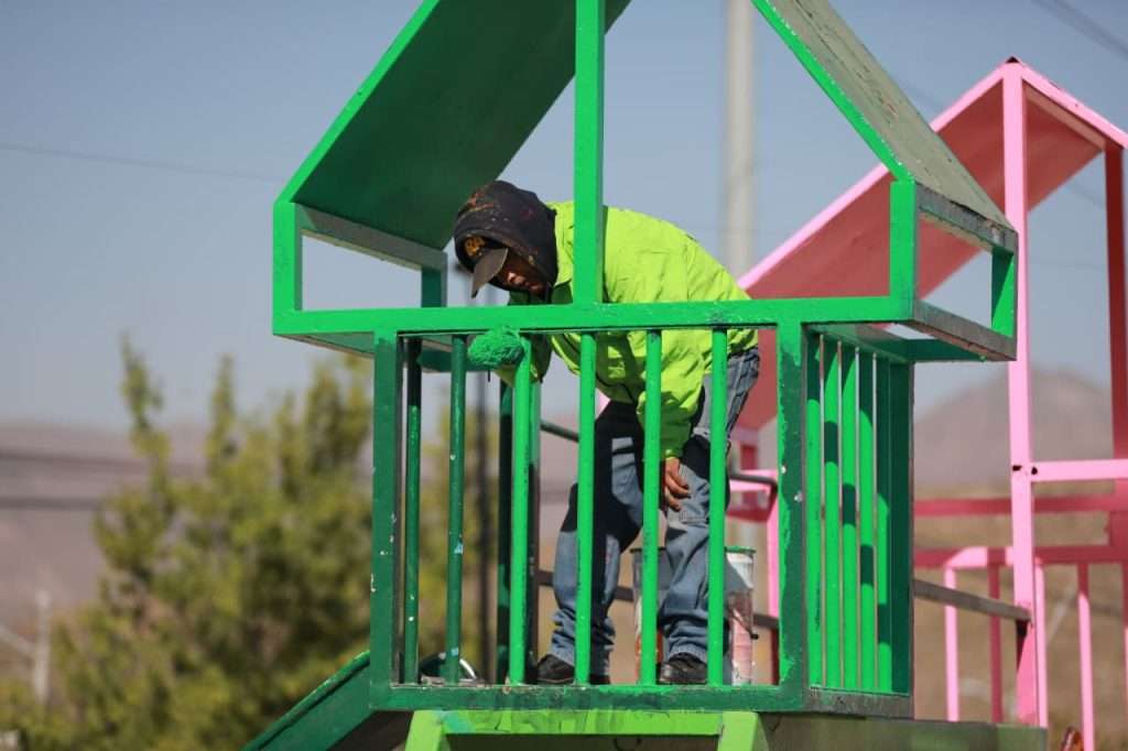 En este espacio al aire libre, personal de Medio Ambiente y Desarrollo Sustentable pintó y embelleció los juegos infantiles, bancas, mobiliario, así como la cancha deportiva ubicada entre las calles Emiliano Zapata, Calle 11 y bulevar Francisco I. Madero, en este sector al sur de la ciudad.
