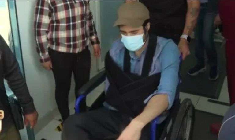 El intérprete se desplazaba en silla de ruedas y presentaba visibles signos de recuperación.