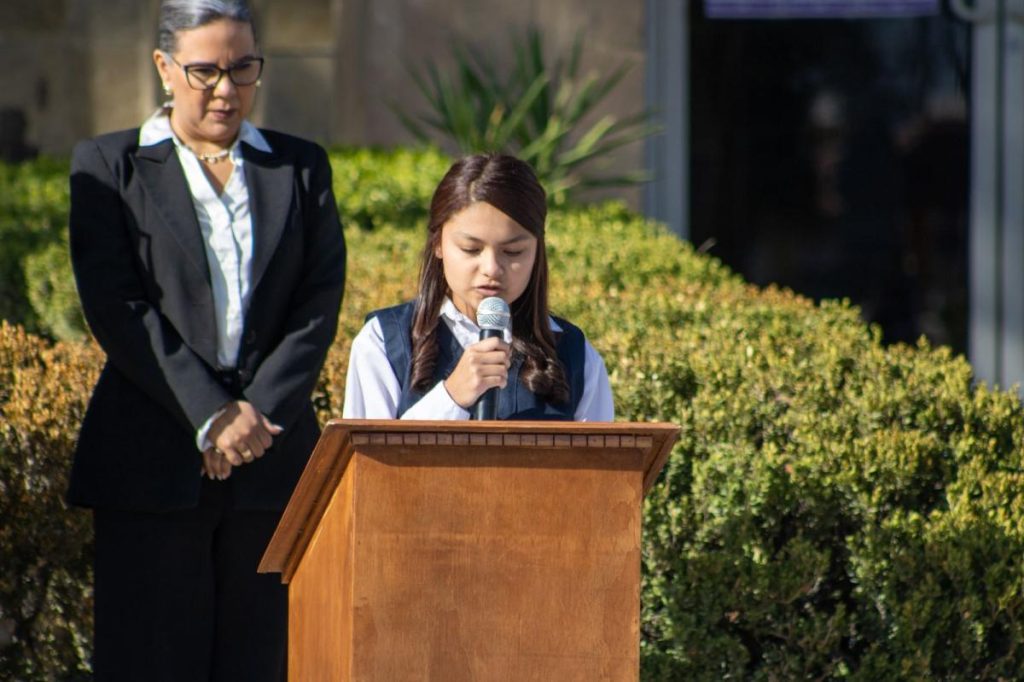 El acto se realizó en la explanada de la Presidencia Municipal, contando con la participación de autoridades municipales, educativas y militares, así como ciudadanía en general.