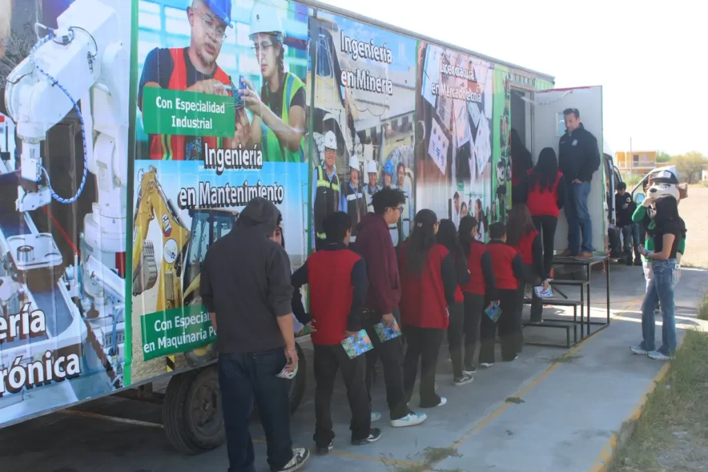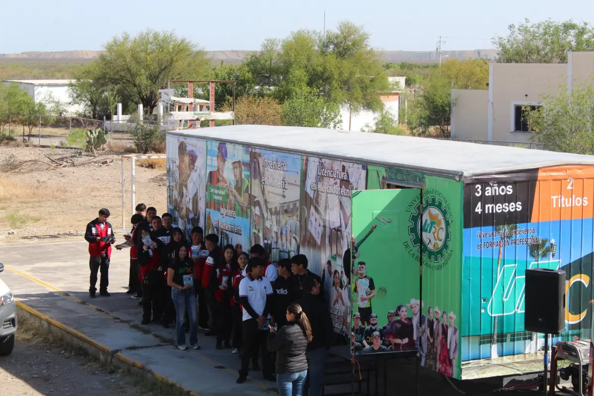 Barroterán, Coahuila.– Con el objetivo de acercar a las y los jóvenes a nuevas oportunidades educativas, la Universidad Tecnológica de la Región Carbonífera (UTRC) visitó el CECyTEC Plantel Barroterán, donde presentó su Aula Móvil equipada con tecnología de vanguardia.