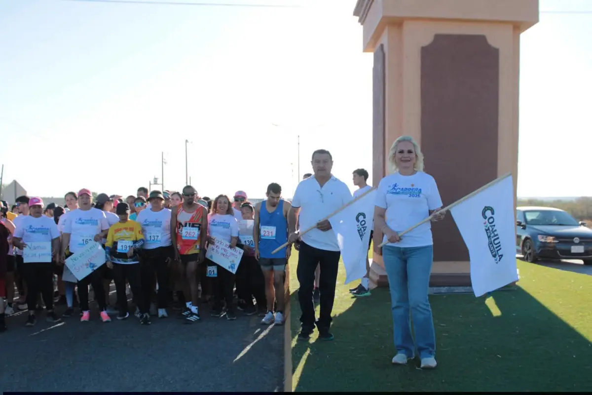 La jornada inició con el banderazo de salida de la carrera 6K, realizado en el arco de bienvenida a la entrada de Múzquiz. Posteriormente, la alcaldesa se trasladó al Parque La Cascada, donde recibió a las y los participantes. A quienes entregó medallas de participación, reconociendo su esfuerzo y compromiso con el deporte.