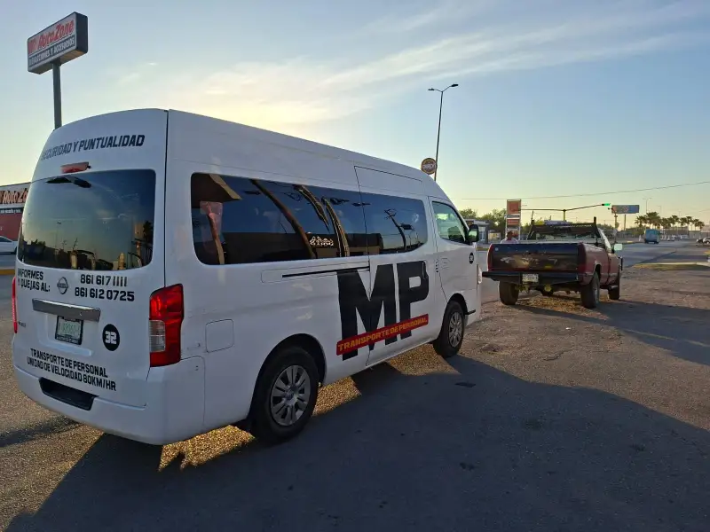 En el percance participaron una camioneta GMC Sierra en color rojo y una unidad de transporte de personal Nissan Urvan blanca.