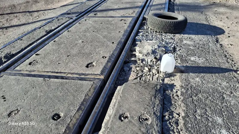 El Gobierno Municipal de Múzquiz informó a la ciudadanía sobre un riesgo detectado en la carretera Sauz–Palaú, a la altura de las vías del ferrocarril en Estación Barroterán. En ese lugar se registró la caída de una placa de concreto, dejando varillas expuestas.