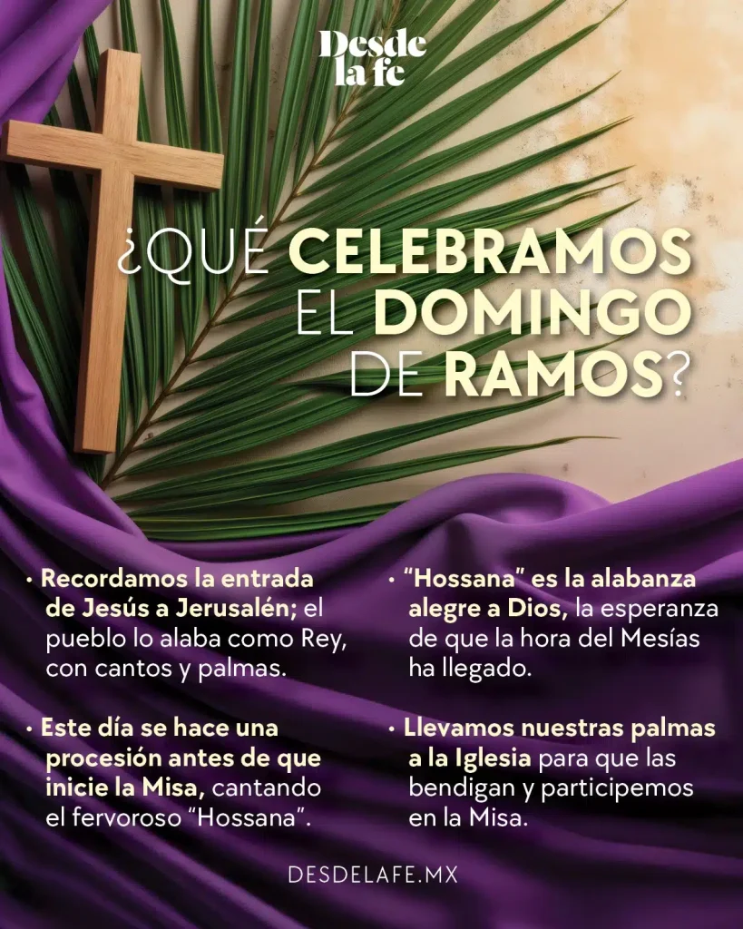 En el Domingo de Ramos es una tradición tener las palmas benditas que representan las ramas que las personas cortaban de los árboles de Jerusalén y que ponían a los pies de Jesús cuando caminaba, mientras lo aclamaban “El Mesías”.Al terminar la Misa los fieles se llevan las palmas benditas a su hogar.