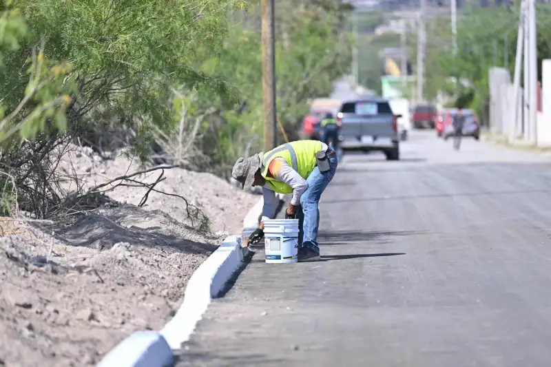 El alcalde de Monclova, Carlos Villarreal Pérez, supervisó obras de pavimentación en la colonia La Amistad, como parte del Plan de Inversión Prendamos Monclova.