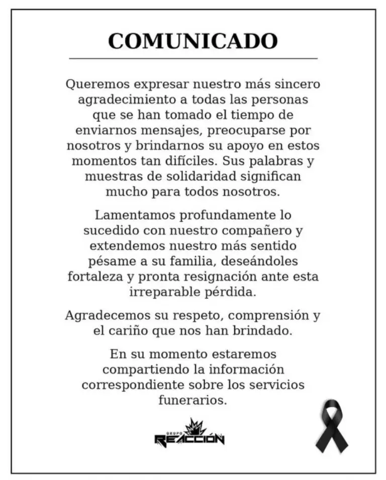 El pasado fin de semana, el vocalista de Grupo Reacción, Arturo Rivera, perdió la vida durante un ataque a balazos en un salón de eventos. Los hechos ocurrieron en la colonia Ciudad Jardín, donde los músicos amenizaban un cumpleaños cuando el anfitrión presuntamente disparó contra ellos.