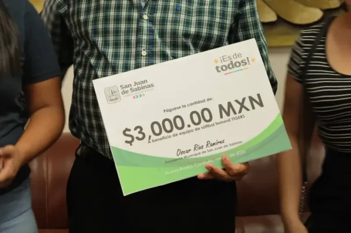 El alcalde de San Juan de Sabinas entregó un apoyo económico al equipo Tigers de Nueva Rosita, destacando su compromiso de fortalecer el deporte y respaldar a las atletas locales.