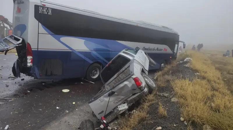 Minutos después, la escasa visibilidad provocó un segundo percance en el kilómetro 10, donde un tráiler colisionó contra un autobús de la línea Ómnibus de México, mientras una camioneta terminó volcada sobre el talud. Paramédicos de Arteaga trasladaron a dos personas lesionadas a hospitales en Saltillo, mientras personal de Capufe atendía a los pasajeros en la zona.