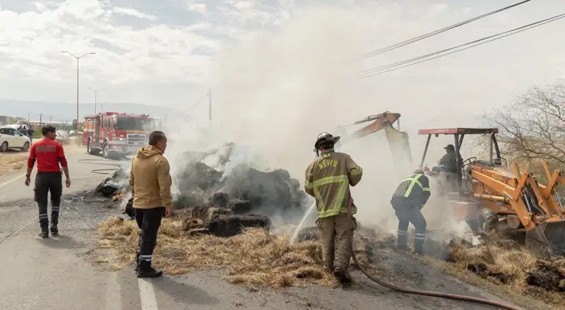 Una rápida movilización de los cuerpos de emergencia permitió sofocar un incendio de forraje que se registraba en una traila sobre la carretera federal 30, a la altura del Aeropuerto Internacional “Venustiano Carranza”. El siniestro fue controlado en cuestión de minutos por elementos de Protección Civil y Bomberos de Frontera.