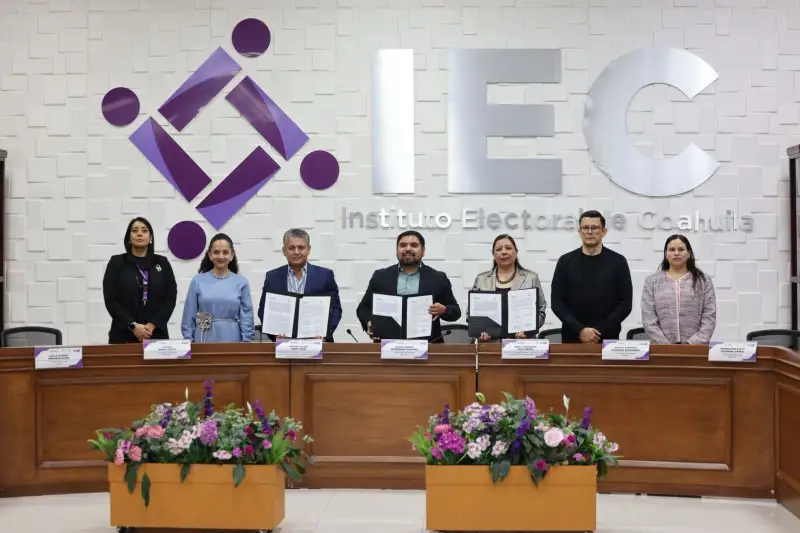 En las instalaciones del Instituto Electoral de Coahuila se llevó a cabo la firma del convenio de colaboración en el que participaron el Poder Judicial del Estado, el Tribunal Electoral de Coahuila y el propio órgano electoral local.