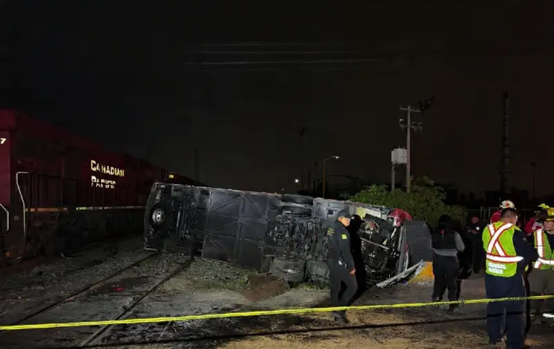 El percance tuvo lugar en el cruce ferroviario ubicado sobre el bulevar Nazario Ortiz Garza, a la altura del bulevar Vito Alessio Robles, por donde circulaba la unidad que trasladaba a empleados de la planta General Motors tras finalizar su turno.De acuerdo con los primeros reportes, el vehículo habría quedado sobre las vías al momento en que se aproximaba la locomotora, la cual terminó impactándolo y provocando que volcara debido a la fuerza del choque.