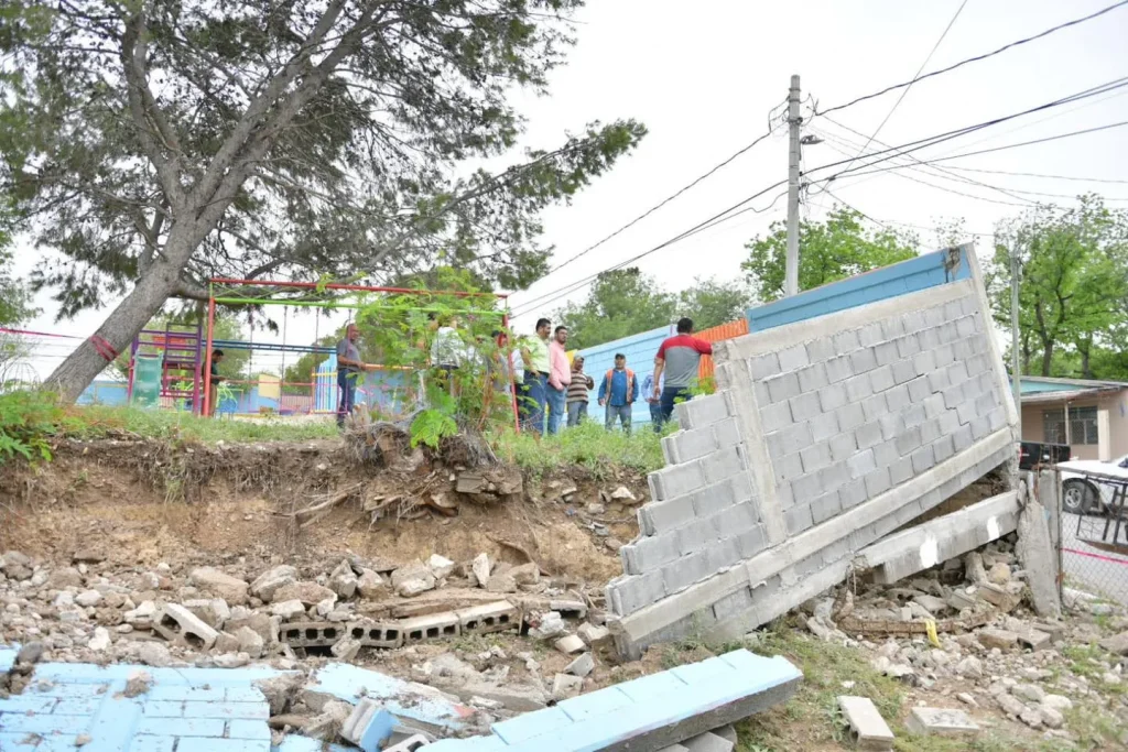 Tras las intensas lluvias registradas el pasado fin de semana, el alcalde Emilio Alejandro De Hoyos Montemayor anunció la reconstrucción de la barda perimetral del Jardín de Niños ‘’Niños Héroes’’, luego de que esta colapsara, generando preocupación entre la comunidad escolar.
