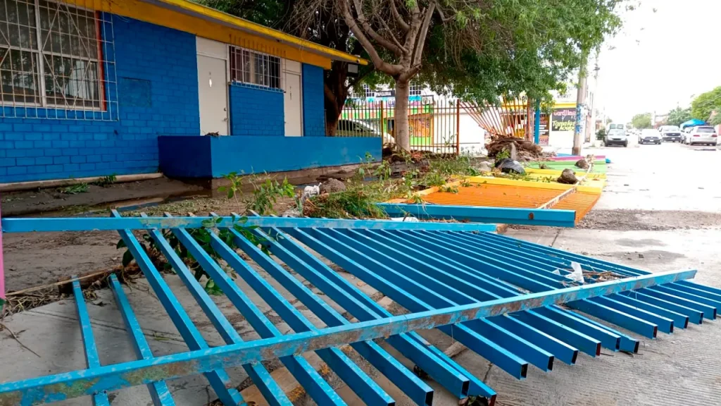 Asimismo, el jardín de niños Celestín continúa en labores de limpieza, principalmente en el área perimetral, donde una barda resultó dañada por la fuerza del agua.
