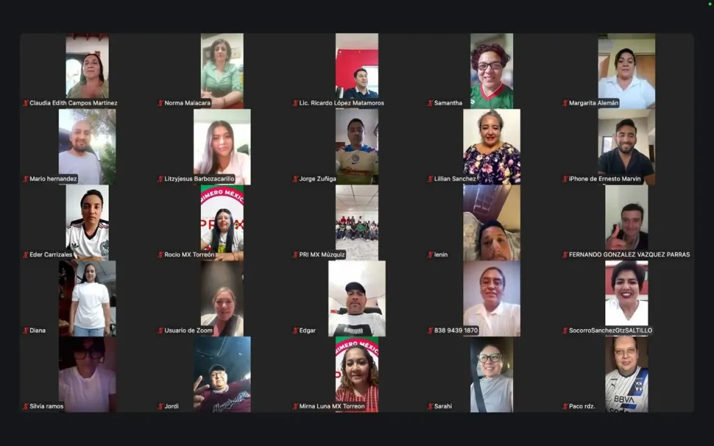 De manera virtual, se contó con la participación de Oled Moreno Ramírez, presidente del Comité Ejecutivo Nacional del Movimiento PRI.Mx, así como de la secretaria del mismo organismo, Daniela Luna, con una asistencia de alrededor de 80 personas conectadas vía Zoom.