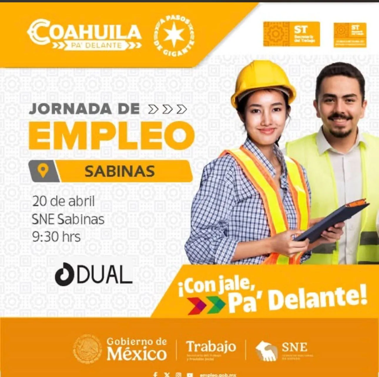 La Oficina Estatal del Empleo en la Región Carbonífera llevará a cabo una jornada laboral en Sabinas, donde se ofertarán más de 50 vacantes para la empresa Dual, con sede en la ciudad de Monclova.