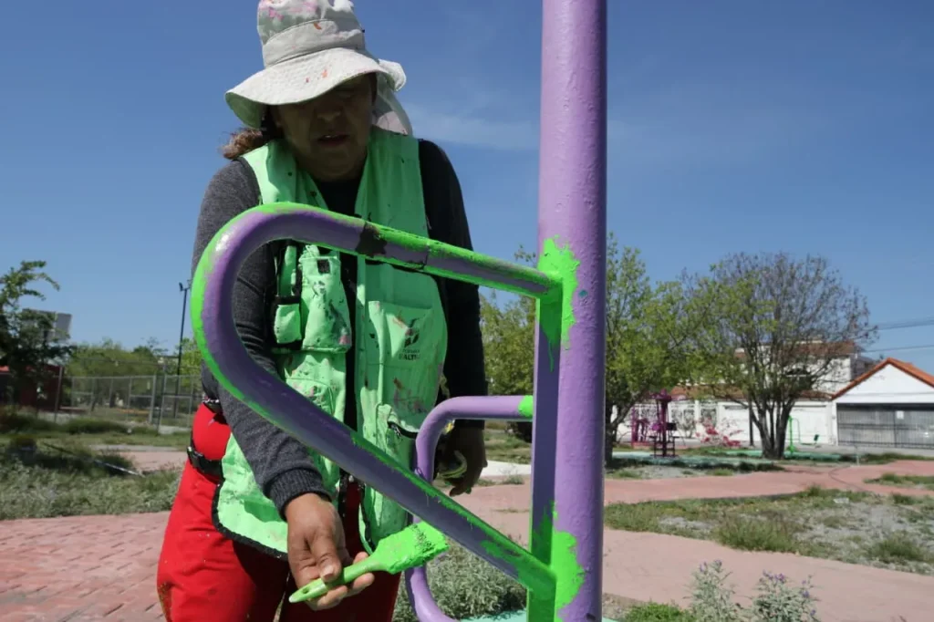 Asimismo, el Gobierno Municipal de Saltillo llevó a cabo trabajos de embellecimiento en la plaza pública del fraccionamiento San Patricio, donde cuadrillas del programa “Aquí Andamos” aplicaron pintura en juegos infantiles, bancas y diverso mobiliario urbano, con el objetivo de ofrecer un entorno más digno, seguro y atractivo para las familias del sector.