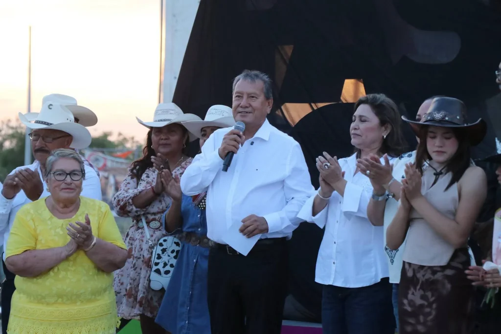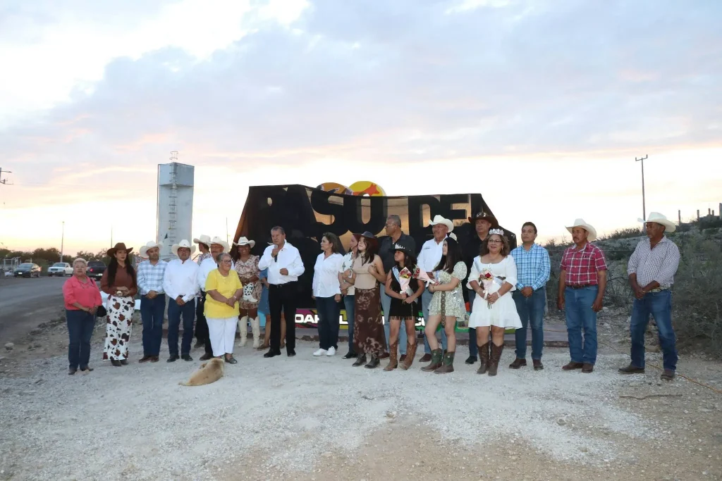 El alcalde Óscar Ríos Ramírez acompañó los festejos, destacando la inauguración de las letras monumentales del ejido, un símbolo representativo que, dijo, surge de la gestión de la propia comunidad y del respaldo del gobernador Manolo Jiménez Salinas.