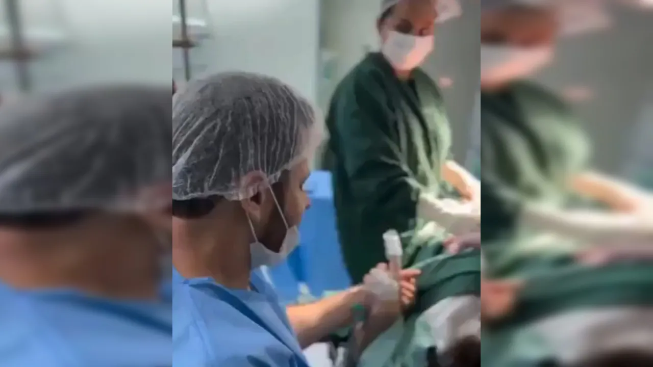 En el video se observa al futuro padre dentro del quirófano, visiblemente nervioso. Vestía equipo médico mientras permanecía junto a su pareja. Sin embargo, la intensidad del momento comenzó a afectarlo.