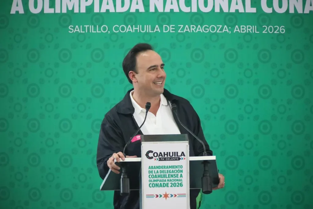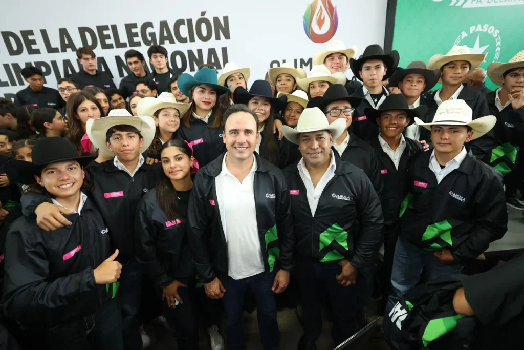 Lo anterior, durante la ceremonia de abanderamiento de la delegación coahuilense que participará en la Olimpiada Nacional 2026, evento en donde se informó que serán 790 las y los coahuilenses, entre atletas y personal técnico, que participarán en 35 disciplinas en esta llamada la máxima justa del deporte amateur en México.