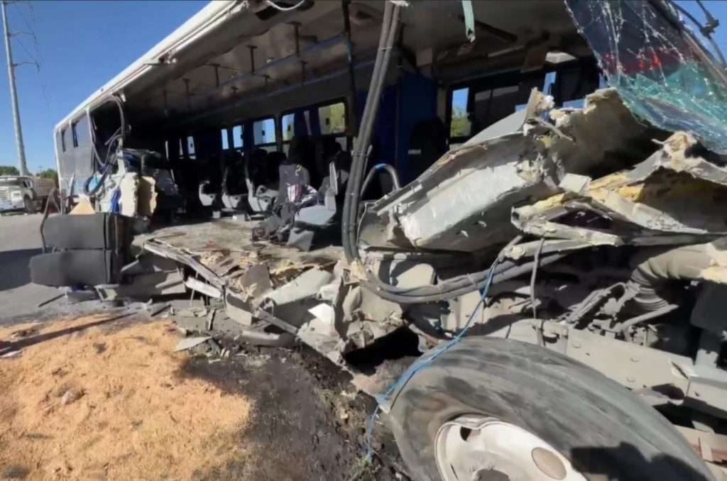 Testigos en el lugar señalaron que el choque fue de gran magnitud, lo que provocó daños severos en la unidad de transporte de personal y complicó las labores de auxilio en los primeros minutos posteriores al percance.