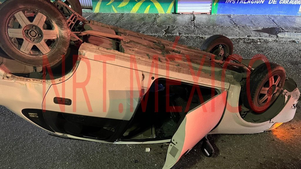 La mujer que conducía salió del automóvil que quedo llantas hacia arriba y se sentó en la banqueta sin dar crédito a como había quedado su automóvil.