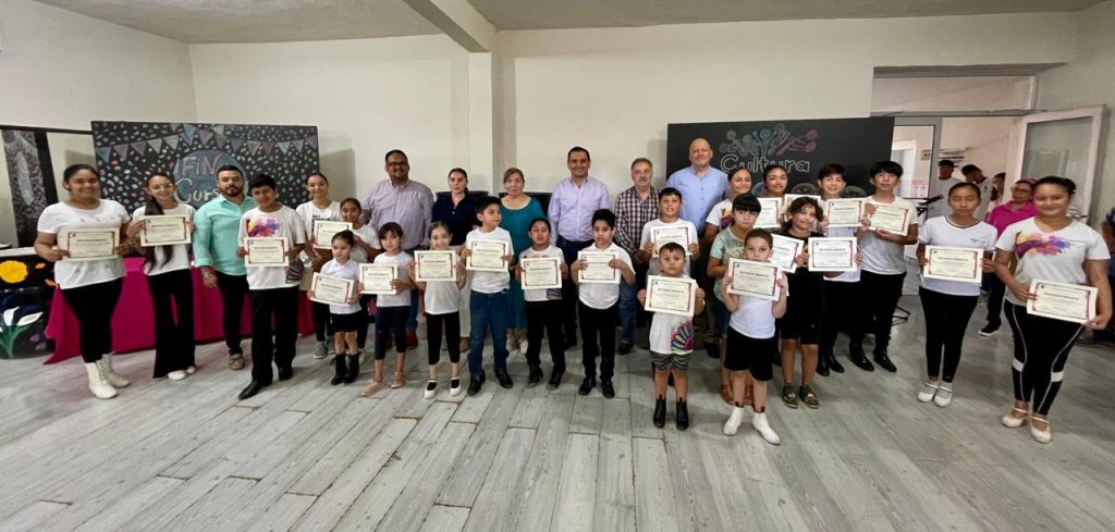 Acompañado de síndicas y regidores de la administración 2022-2024, el alcalde Pepe Díaz acudió a la clausura de los cursos de la Casa de la Cultura, reafirmando así el apoyo de la administración con el arte y sus diversas expresiones como el baile, canto y dibujo.